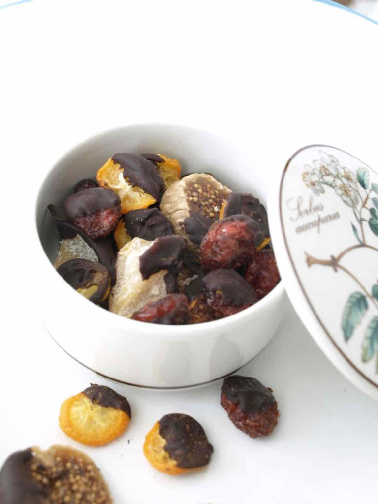 さて、今月のレシピは「ディップドドライフルーツチョコレートwith スパイス」−スパイス風味のドライフルーツのチョコレートがけです。